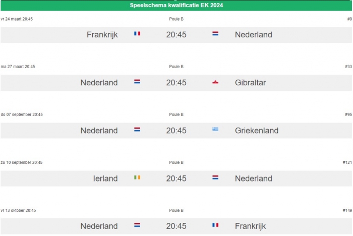 Oranje start kwalificatie voor EK met kraker tegen Frankrijk