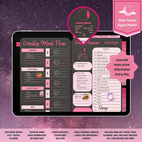 2024 Cute Moon Digital Planner 2024 Digital Planner for iPad Etsy